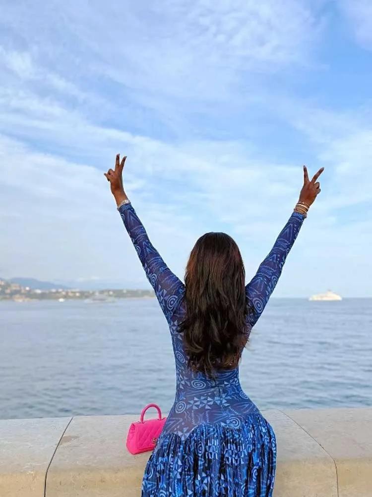 Royal Blue Dress for Women Mid-turtleneck High Waist Transparent Light Long Dress with Sleeves Streetwear Pleated Maxi Dress